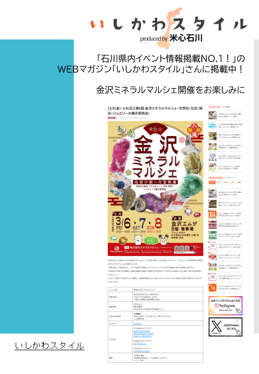 > WEBマガジン「いしかわスタイル」さんにイベント情報コーナーに掲載いただきました